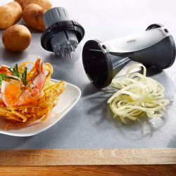 Este es uno de los utensilios más utilizados en la cocina saludable, porque permite hacer los famosos espaguetis de calabacín o zoodles, y hacer todo tipo de interesantes ensaladas y platos de verduras, a tiras.